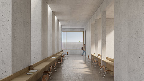 An der Einreichung von h4a Gessert Randecker Architekten lobte das Preisgericht in seiner Anerkennung die "Neuinterpretation des Arkadengangs