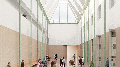 Im Zuge des vorliegenden Wettbewerbsverfahrens sollen Konzepte für eine grundlegende Neustrukturierung und Kernsanierung entwickelt werden, die die Anforderungen der NutzerInnen möglichst ideal abbilden, zeitgemäße Arbeits- und Lernräume schaffen. Sämtliche Planungskonzepte sind unter Berücksichtigung der denkmalpflegerischen Belange zu bewerten.