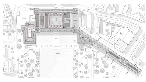 Die Planungsaufgabe besteht aus der Sanierung und Neustrukturierung des gesamten Hauptgebäudes, bestehend aus Hauptflügel (inkl. Kaiserplatzflügel) und Ostflügel. Sämtliche Konzepte sind immer unter Berücksichtigung der Vorgaben und in enger Abstimmung mit dem Denkmalschutz zu betrachten. Die Vorgaben des Denkmalschutzes wurden im Rahmen des Planungswettbewerbes bewusst weich formuliert, um mög-lichst vielfältige Lösungen zu erhalten.