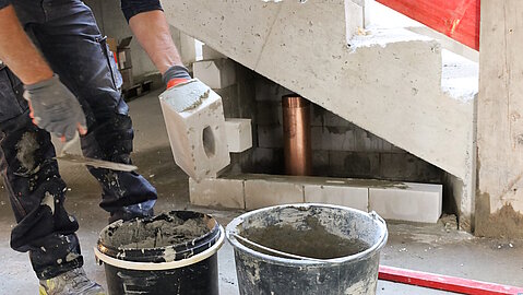 Der Neubau des CMM beruht auf einem innovativen Forschungskonzept von 47 Forschungs- und Nachwuchsgruppen des Fachbereichs Mathematik und Informatik der Universität Münster. Realisiert wird das von der Gemeinsamen Wissenschaftskonferenz von Bund und Ländern als förderungswürdig ausgezeichnete Projekt vom BLB NRW. Dessen Projektteam arbeitete bei den Entwürfen eng mit den Mathematikern zusammen. „Die Planungen standen unter dem Schlagwort ‚organisierter Zufall‘. Dafür mussten zum Teil ungewöhnliche architektonische Lösungen und Raumordnungen entwickelt werden“, berichtet der Architekt Noah Thieben vom BLB NRW, der sich mit den Mathematikern und weiteren Kollegen an diesem Tag auf der Baustelle getroffen hat. Heute soll die kupferne Dokumentenrolle, die vergangenes Jahr bei der Grundsteinlegung für das CMM symbolisch eingemauert wurde, ihren finalen Platz im Gebäude erhalten. Eigens hierfür haben die Handwerker unter der Freitreppe eine Öffnung im Mauerwerk freigelassen, hinter der die Zeitkapsel nun für nachfolgende Generationen aufbewahrt wird. Sie enthält neben einer Urkunde, Bauzeichnungen, Tageszeitung, Münzgeld, Kreide und ein Stück Schiefer sowie weitere Erinnerungsstücke mit Bezug zum Gebäude.